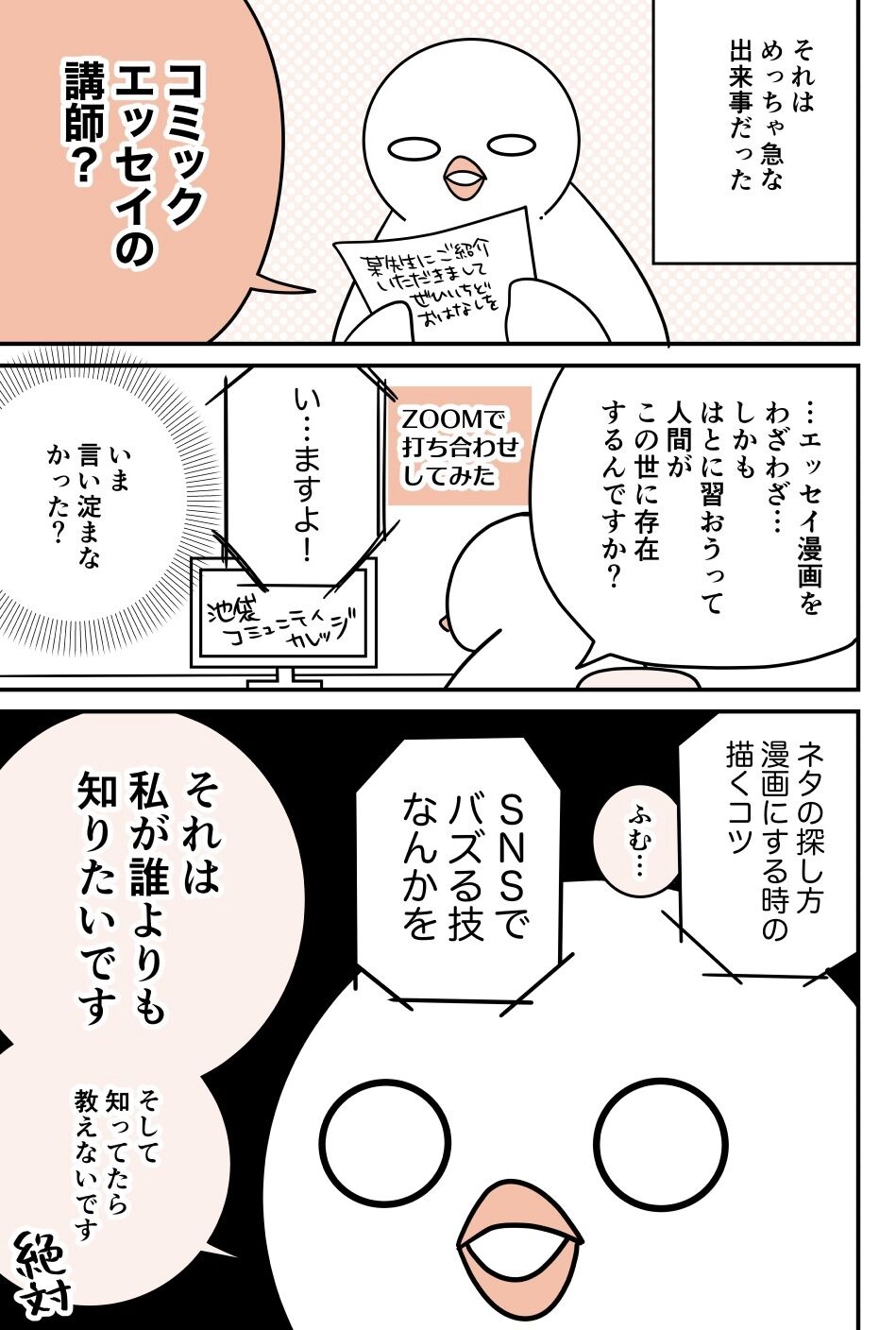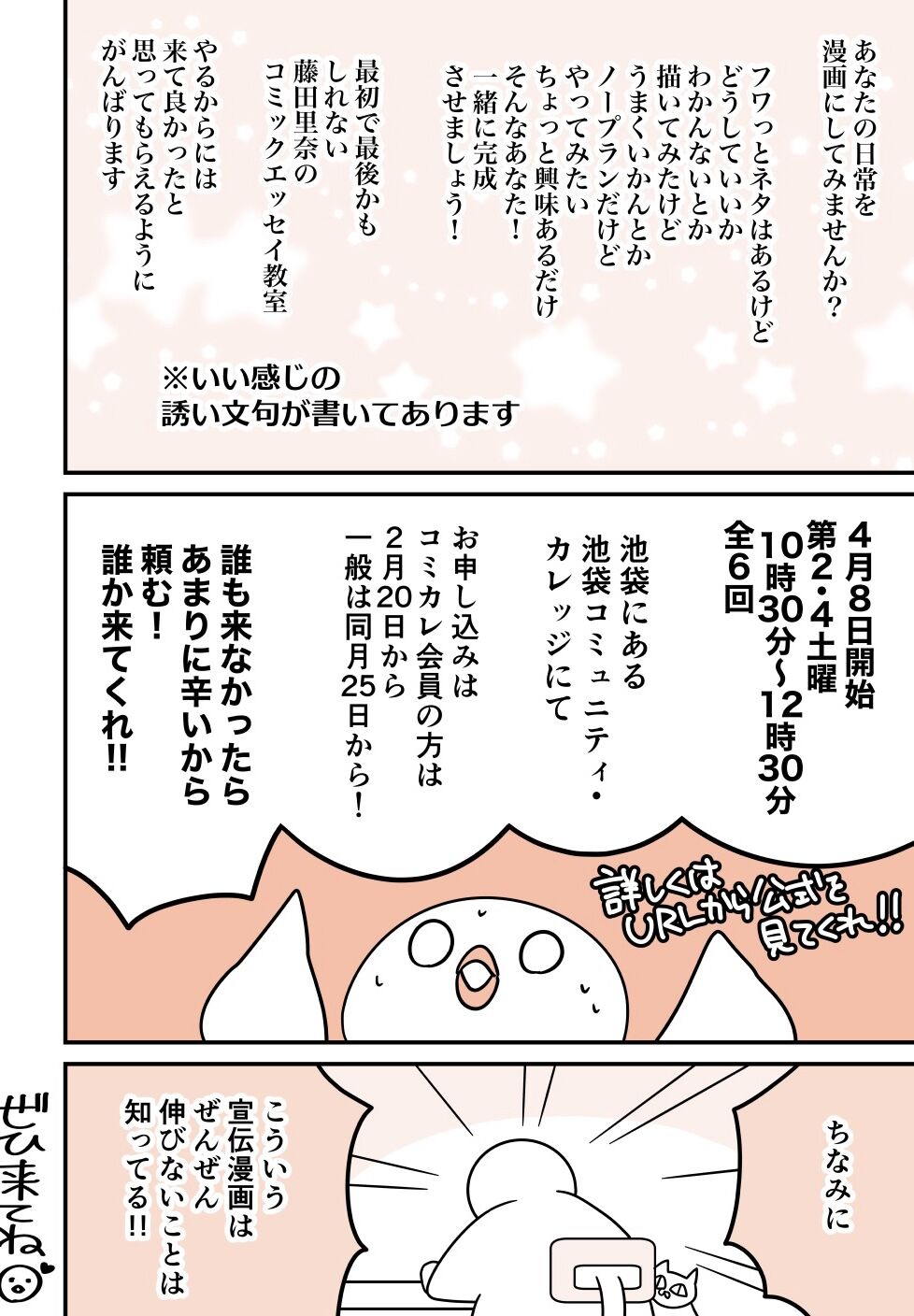 コミックエッセイの教室をやることになった話 2023年04月04日 17:37 日時:2023年4月〜6月 第2・4土曜 午前クラス 10:30~12:30(全6回) 午後クラス 13:30〜15:30(全6回) 現在午前クラスが満了となりました! 午後に若干名空きがございます。 詳しくはこちらから! 池袋コミュニティカレッジ https://cul.7cn.co.jp/programs/program_996702.html?shishaId=1001 こちらからの告知が直前になってしまい申し訳ありません!🙇♀️💦💦 「はとにっき」カテゴリの最新記事 < 前の記事次の記事 > コメント コメント一覧 (1) 1. こめ 2023年04月24日 16:10 講座を知ったのが直前でもう満席でした。 是非7月期からも講座を作って欲しいです! 期待してお待ちしています~ 0 藤田里奈 がしました コメントフォーム 名前 コメント 記事の評価 リセット リセット 顔 星 情報を記憶 コメントを投稿する